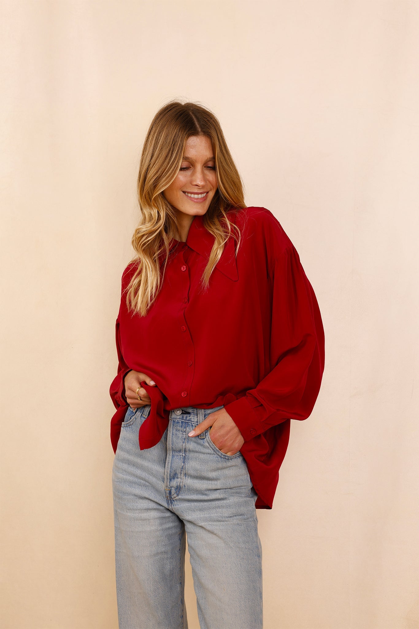 - Shirt with long puff sleeves