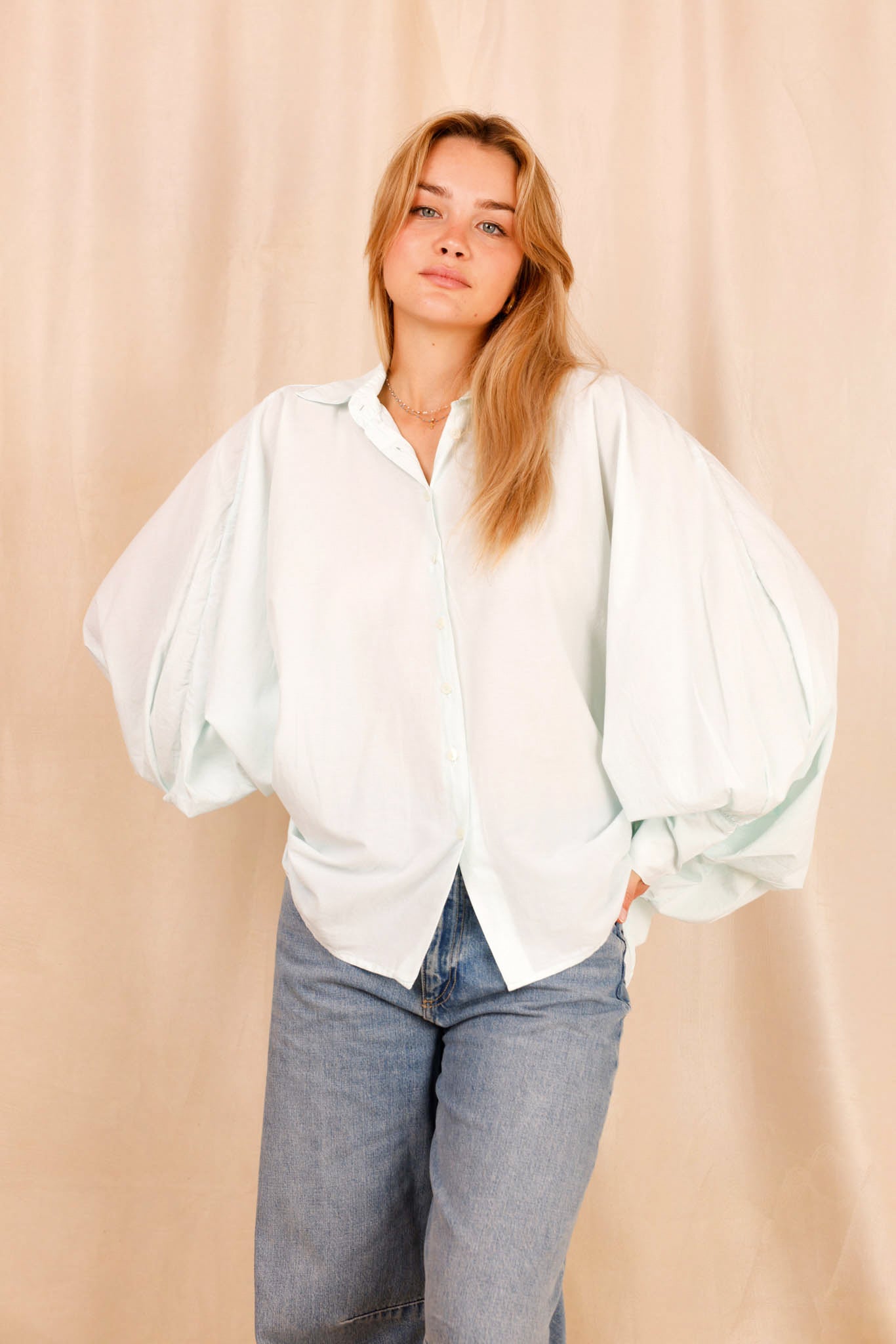 Cette chemise est pensée pour s’adapter à toutes vos envies. Associez-la à un pantalon ajusté pour une tenue professionnelle ou à une jupe fluide pour une allure plus décontractée. Ses manches chauve-souris offrent une liberté de mouvement optimale et un style unique.